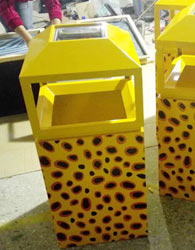 此外,我公司產(chǎn)品還可根據(jù)客戶的要求進(jìn)行外觀上的調(diào)整,比如分類環(huán)保垃圾箱就按照客戶的要求將人頭標(biāo)改為了綠色絲印,立柱方面多加了一個(gè)支持點(diǎn),并且顏色也改為了鮮綠色等,做到完全令客戶滿意!到目前為止,因工廠購入了各種先進(jìn)的專業(yè)設(shè)備,質(zhì)與量都完全滿足市場所需,從下單到送貨上門大大的縮短周期,只要您有需要,短短10-15天就可給您送貨上門。