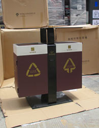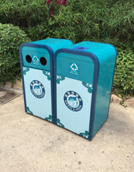 由于欣方圳垃圾桶廠家該款鋼制垃圾桶訂單的產品是鍍鋅鋼板材質,大大增加了產品的使用壽命,根據客戶的要求,該產品采用靜電噴涂工藝,使桶身表面的漆料牢牢吸附, 漆料方面更是選用了防水,防腐,耐高溫的材料,更是增加了該產品的耐用性。桶身投口采用內推蓋的設計,不僅僅美觀,更是防止蚊蠅的滋生。方便了垃圾的存放,由于該桶為兩個單桶組合在一起,桶身上由專業的設計人員設計公司的圖案,不僅僅突出了公司的標識,更使得產品更加美觀。