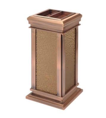• 產品材質:采用天然的大理石與優質冷軋鋼板或不銹鋼鋼板制作而成,四面大理石用鋼板螺絲固定于桶體,有內桶,方便提倒垃圾,桶頭煙灰盅可放白石子可清洗,鋼板經折彎沖壓一次性成型。產品一律用室外粉靜電噴塑,經過180°的高溫,延長垃圾桶使用壽命,顏色持久不變亮麗如新。