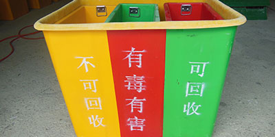 玻璃鋼垃圾桶桶身和內膽部分,采用高級玻璃鋼材質一次成型,經過打磨、除塵、噴漆等一系列后期工藝然后出成品。