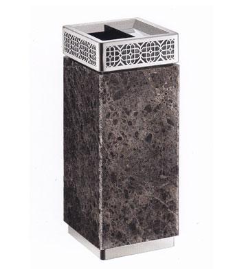 • 產品材質:采用天然的大理石與優質冷軋鋼板或不銹鋼鋼板制作而成,四面大理石用鋼板螺絲固定于桶體,有內桶,方便提倒垃圾,桶頭煙灰盅可放白石子可清洗,鋼板經折彎沖壓一次性成型。產品一律用室外粉靜電噴塑,經過180°的高溫,延長垃圾桶使用壽命,顏色持久不變亮麗如新。