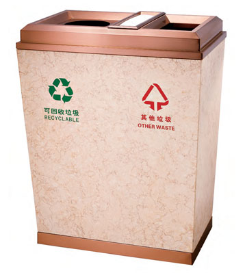 • 產品材質:采用天然的大理石與優質冷軋鋼板或不銹鋼鋼板制作而成,四面大理石用鋼板螺絲固定于桶體,有內桶,方便提倒垃圾,桶頭煙灰盅可放白石子可清洗,鋼板經折彎沖壓一次性成型。產品一律用室外粉靜電噴塑,經過180°的高溫,延長垃圾桶使用壽命,顏色持久不變亮麗如新。
