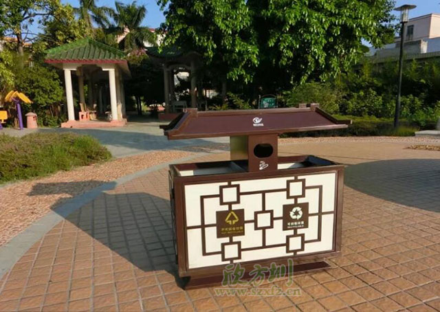 中國風戶外鋼制分類垃圾桶工廠批量生產圖