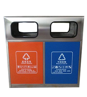• 產品材質:不銹鋼定制雙分類垃圾桶采用201#,202#,304#優質不銹鋼材料模壓成型,堅固耐用,不易破損;耐火安全,抗高低溫,適合各種惡劣氣候條件;金屬亮澤,高雅美觀,廣泛適用于各種場所;內外表面光潔,減少垃圾殘留,易于清潔;配置鍍鋅板內桶,便于垃圾清倒;