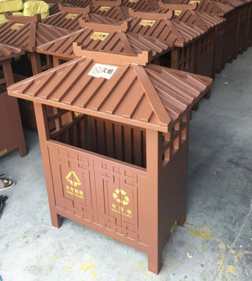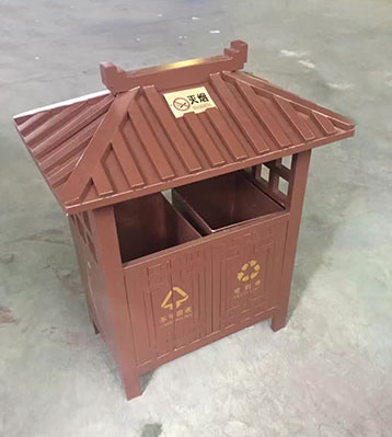 欣方圳景區(qū)古典鋼制分類垃圾桶戶外擺放圖