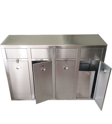• 使用范圍:四分類不銹鋼垃圾桶表面光滑、亮麗,是電梯口、寫字樓、學校、物業、賓館、酒店、機場、汽車站等擺放的首選。