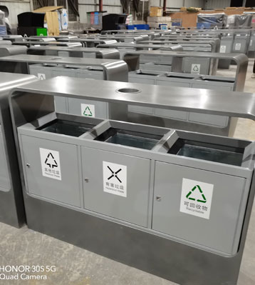 戶外鋼制分類垃圾箱工廠制作成品圖