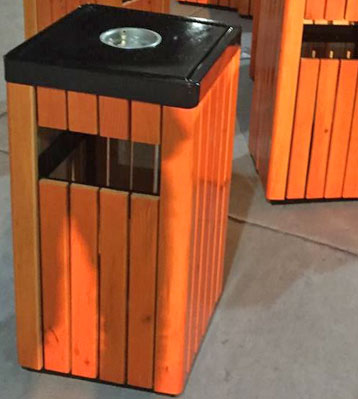 戶外鋼木單桶垃圾桶生產成品擺放圖