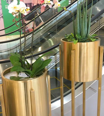 商場電鍍香檳色不銹鋼花盆圖