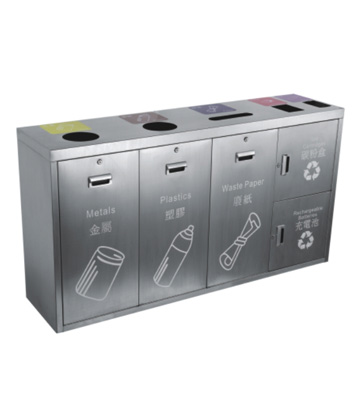 欣方圳不銹鋼五分類環保回收箱批量生產圖