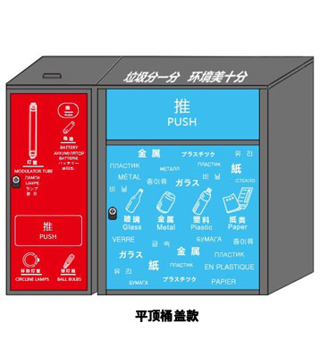 深圳南山款玻金塑紙投口推蓋設計自動復位防異味散發清潔環保,有害垃圾收集箱桶頭帶把手可投放較長燈管,垃圾分類標識醒目有助從源頭規范垃圾分類投放,可與宣傳欄、洗手盆組合成深圳垃圾分類3.0模式!