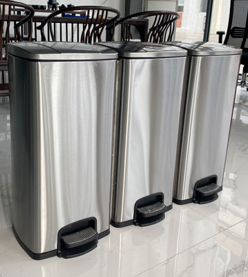 欣方圳90L家用室內(nèi)不銹鋼腳踏三分類垃圾桶批量生產(chǎn)圖
