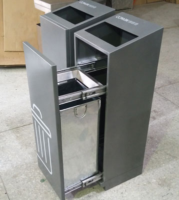 不銹鋼室內滑軌四分類果皮箱桶門推拉打開方式