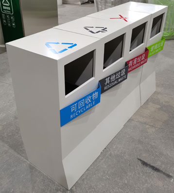 • 使用范圍:不銹鋼四分類果皮箱表面光滑、亮麗,是市政、企業、寫字樓、酒店、機場、商場等戶外分類垃圾收集擺放的首選。