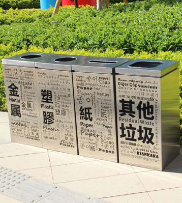 多國文字組合式不銹鋼分類垃圾桶