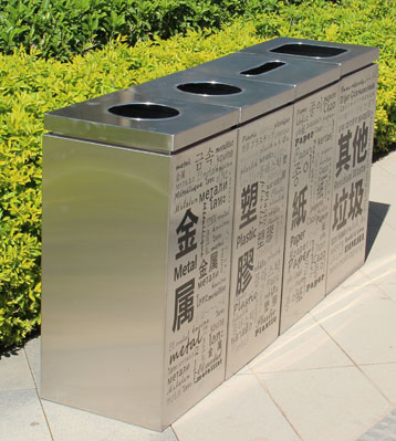 • 使用范圍:多國文字組合式四分類垃圾桶表面光滑、亮麗,是商場,寫字樓,購物中心,機場地鐵站,企業等室內果皮垃圾收集容器。