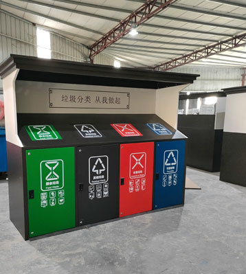 • 產品材質:小區垃圾分類房大容量分類垃圾桶站點整體尺寸制作需求可按地方標準要求定制,常用的制作材質有鍍鋅板、不銹鋼、戶外塑粉靜電噴涂,其工藝特點表現為較高的戶外適應性,表面涂層堅固,不易脫落,抗紫外線以及耐候性強??苫厥瘴锿犊跒樗{色,其他垃圾為淺灰色,廚余垃圾綠色,有害垃圾為紅色,顏色搭配美觀,可配套洗手盆投放后清洗。.表面無毛刺、無披鋒,棱角和邊緣做圓角處理.