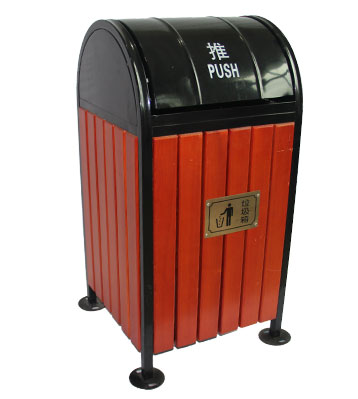 欣方圳戶外推蓋鋼木單桶垃圾桶產(chǎn)品展示