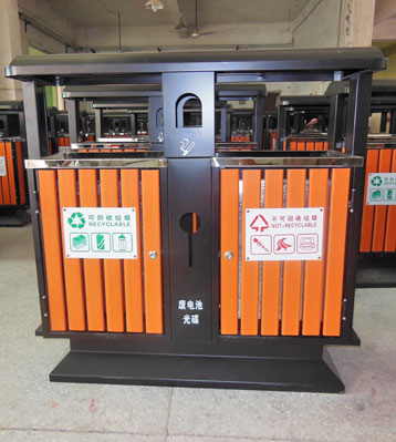 • 產品材質:環保鋼木分類垃圾桶定制可選進口實木(防腐木.紅胡桃.山樟木等)、鋼結構、塑木等。