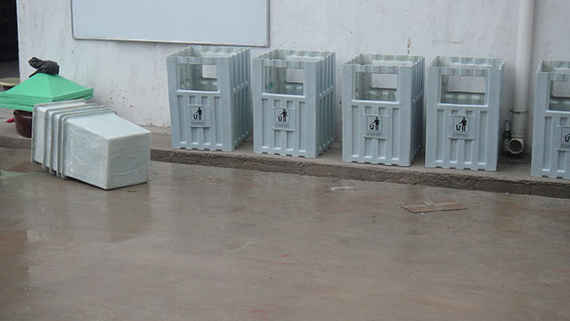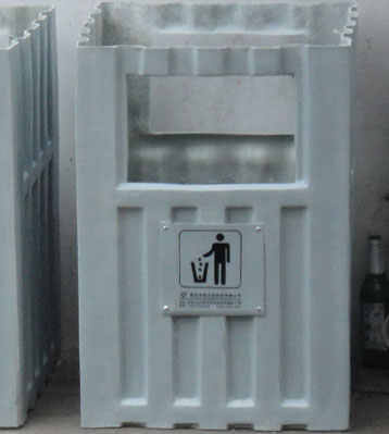 玻璃鋼垃圾桶桶身和內膽部分,采用高級玻璃鋼材質一次成型,經過打磨、除塵 、噴漆等一系列后期工藝然后出成品。