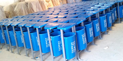 玻璃鋼垃圾桶桶身和內膽部分,采用高級玻璃鋼材質一次成型,經過打磨、除塵 、噴漆等一系列后期工藝然后出成品。