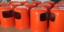 玻璃鋼垃圾桶桶身和內膽部分,采用高級玻璃鋼材質一次成型,經過打磨、除塵 、噴漆等一系列后期工藝然后出成品。