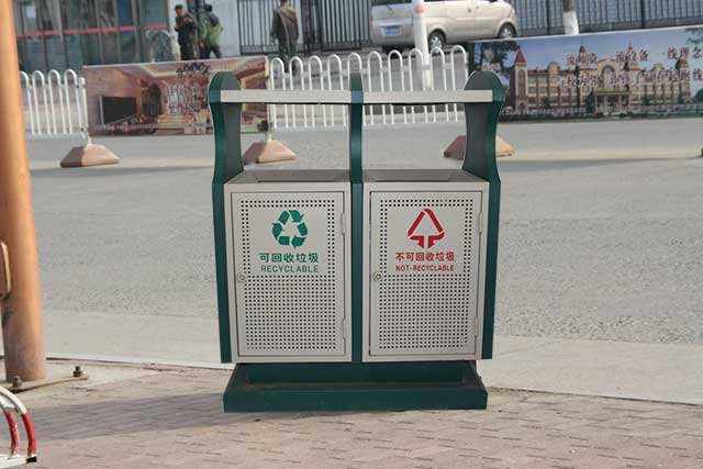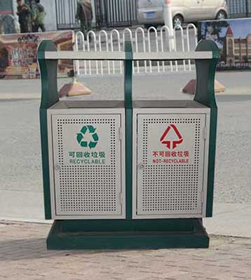 不銹鋼沖孔戶外分類垃圾桶西安六中的選擇