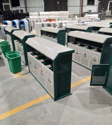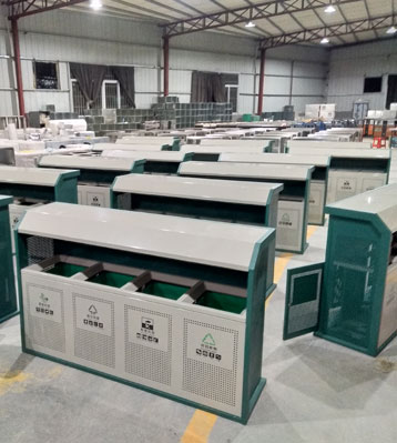 江西南昌園林綠化工程公司在室外分類垃圾桶的選擇上,采購的是當下流行的可回收物、其他垃圾、廚余垃圾、有害垃圾組成的4分法垃圾收集容器。鍍鋅板...